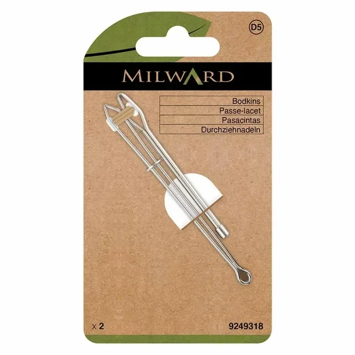 De Bodkin naalden van Milward zijn onmisbare hulpjes voor bijvoorbeeld zelfmaakmode. De ene naald is perfect voor het aanbrengen van elastiek en koorden in tunnels van bijvoorbeeld taillebanden, capuchons en tassen. Deze set bevat twee naalden met stompe uiteinden. De ene naald gebruikt u voor het inrijgen van garen, koord of elastiek. Door het materiaal in de naald te klemmen, wordt het inrijgen een eenvoudig klusje. Met de andere Bodkin haalt u grove materialen, zoals koord gemakkelijk door bijvoorbeeld een zeilring. De verpakkingen van Milward zijn 100% plasticvrij en bovendien volledig recyclebaar.